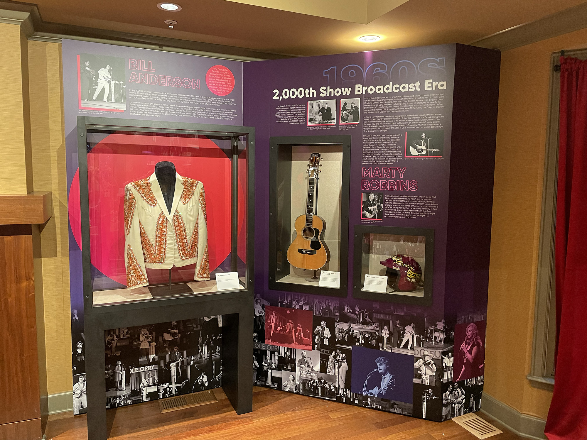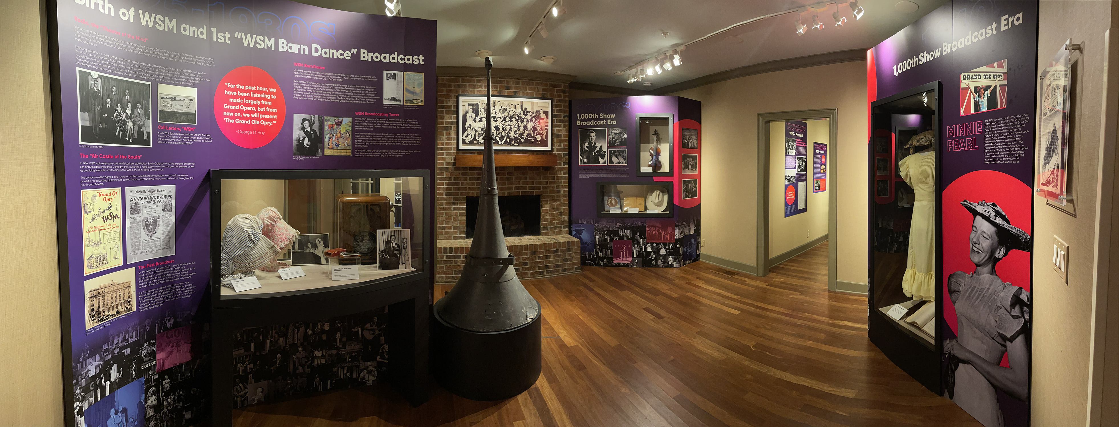 I designed the environmental and graphic system for a pop-up museum exhibit at The Grand Ole Opry in Nashville, TN celebrating the history of WSM Radio. Working within strict client and curatorial guidelines, I developed the visitor experience as a walk-through timeline using layout, sequencing, and signage to guide guests through decades of cultural impact.