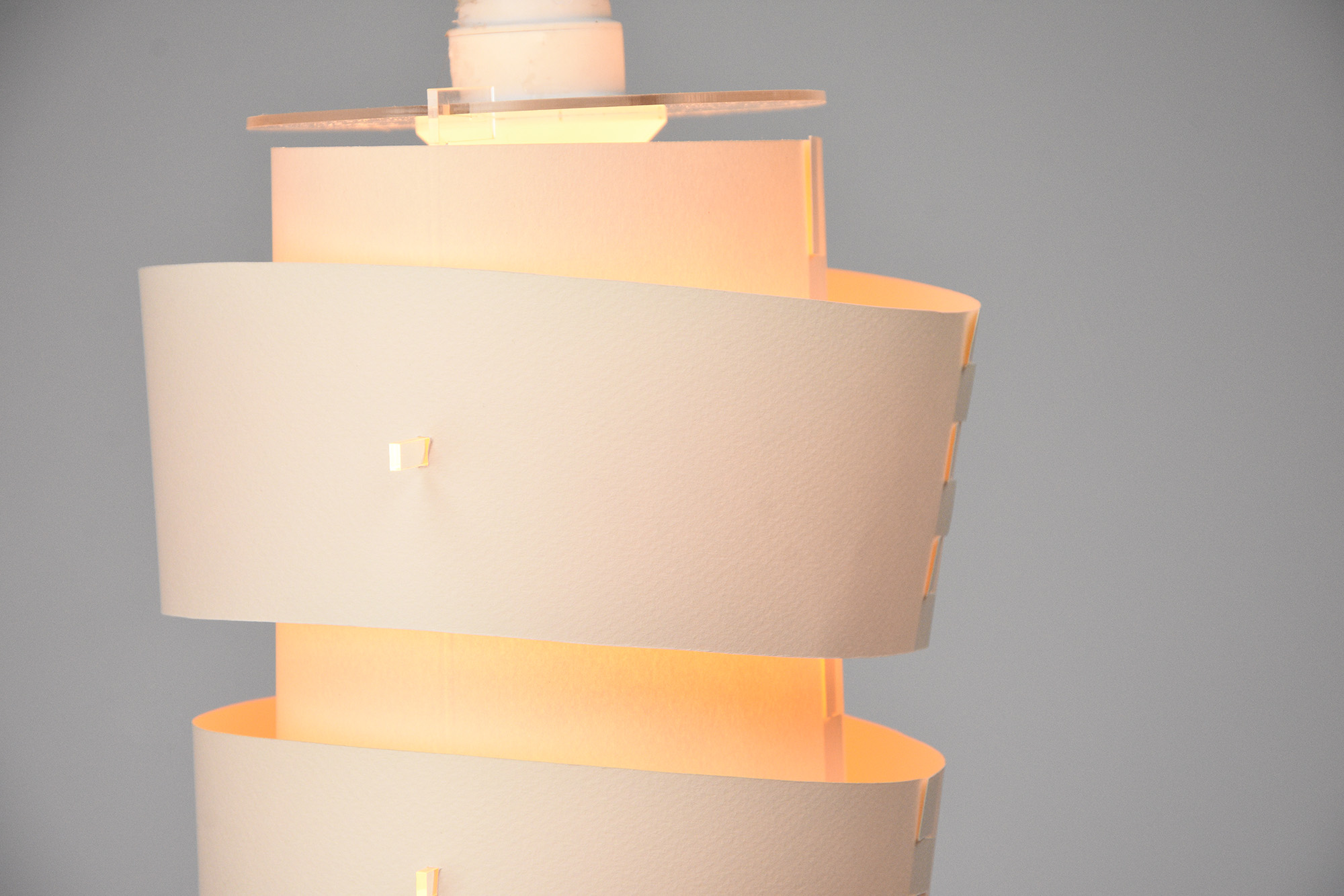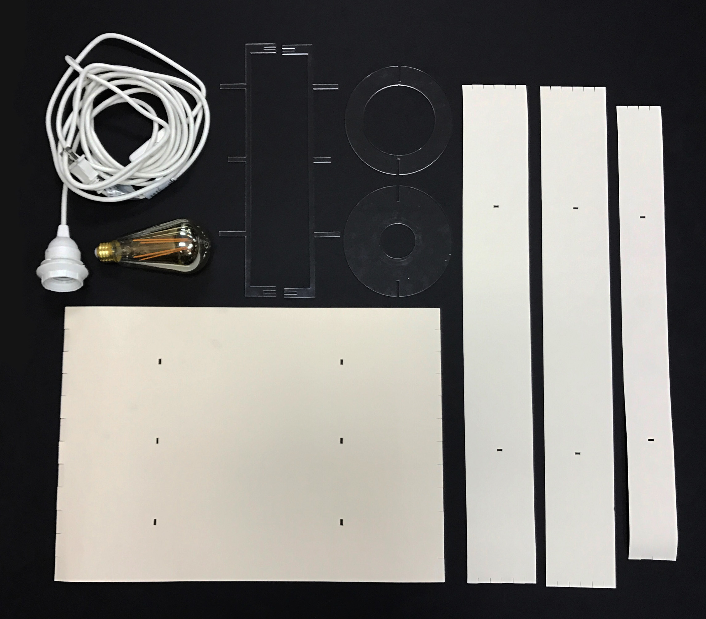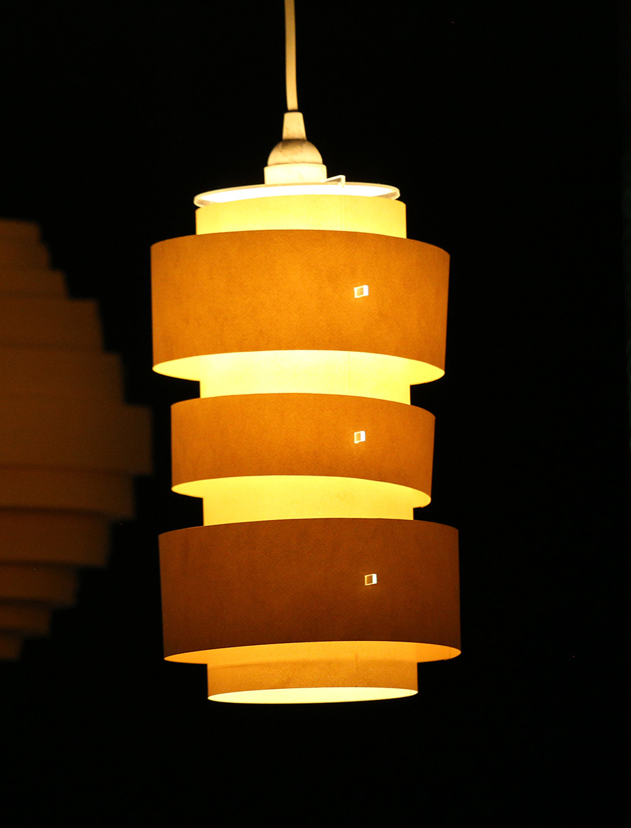 This project explores the design of a pendant light fixture intended to be sold as a flat-pack product and assembled by the consumer. The luminaire was designed using ¼” acrylic for the structural components and paper for the shade, with all parts laser cut for precision and repeatability. A key focus was designing an intuitive assembly process while arranging the cut files to minimize material waste.